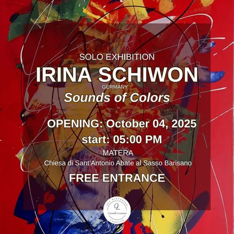 《Irina Schiwon: 色彩的声音》是德国籍俄罗斯艺术家Irina Schiwon在意大利马泰拉圣安东尼奥阿巴特教堂举办的全新个展。本次展览以“色彩的音乐性”为主题,精选艺术家近年来的抽象绘画作品,展现她如何用色彩表达情感、生命力与希望。Irina Schiwon受康定斯基、米罗及包豪斯大师影响,作品以大胆的色块和自由的笔触著称,曾在柏林、莫斯科、威尼斯等地举办展览。此次展览由艺术史学者Carmela Loiacono策展,并获得马泰拉市政府支持,免费向公众开放。