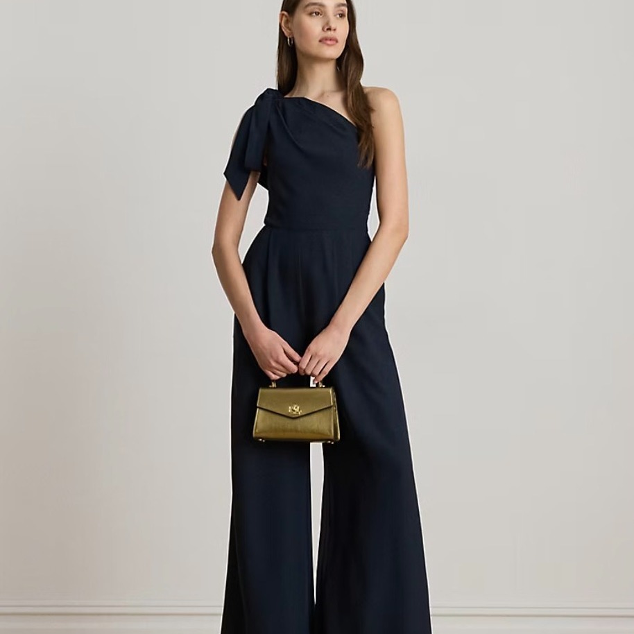 Bow-Trim Crepe One-Shoulder Jumpsuit