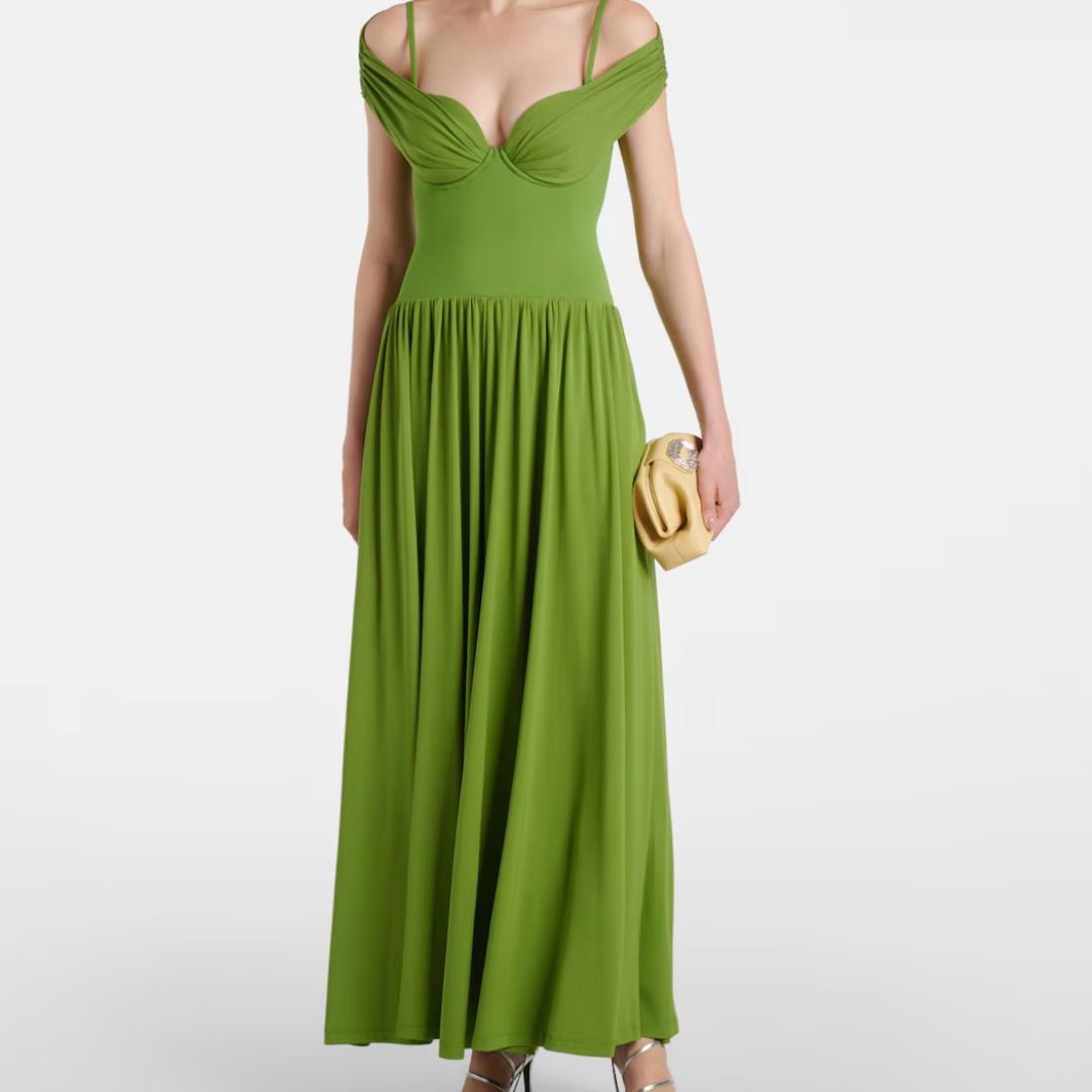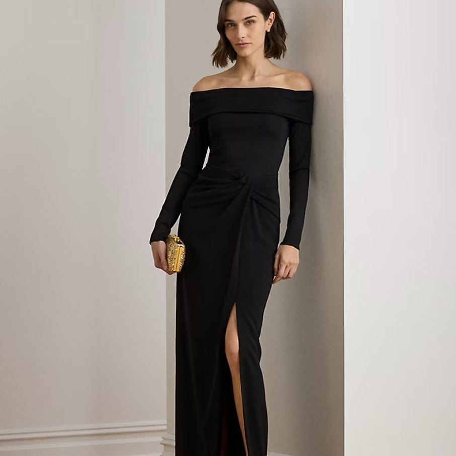 Rib-Knit & Crepe Off-the-Shoulder Gown
