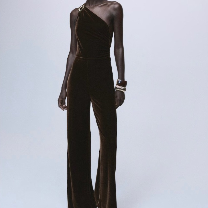 Velvet jumpsuit with metallic detail
