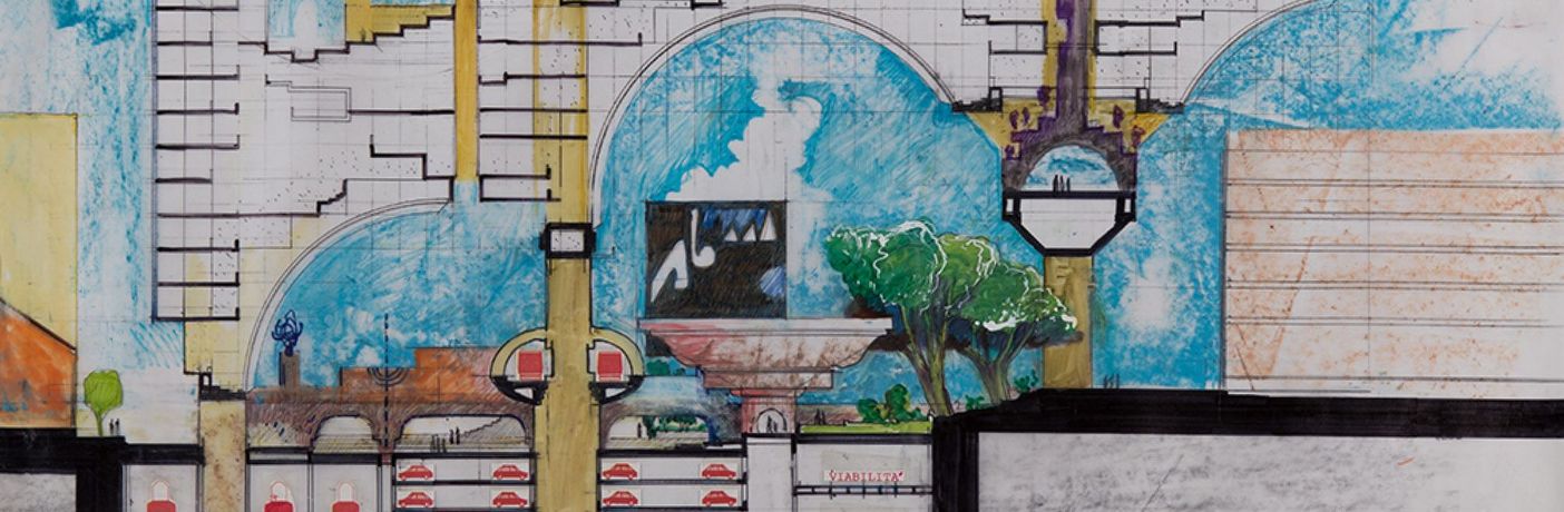 这幅作品展现了Pellegrin为罗马铁路区域提出的宏伟改造蓝图,融合了城市更新与可持续发展的理念。通过细致的剖面图和结构设计,体现了他对城市空间流动性和未来基础设施的深刻洞察,是本次展览的核心亮点之一。