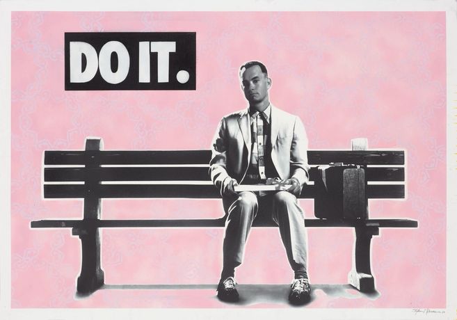 以Forrest Gump为灵感,描绘主角坐在长椅上,似乎在与观众对话。作品以“Fallo”(去做吧)为主题,鼓励观众面对不确定的未来勇敢行动,呼应展览对现代人焦虑与希望的双重关注。