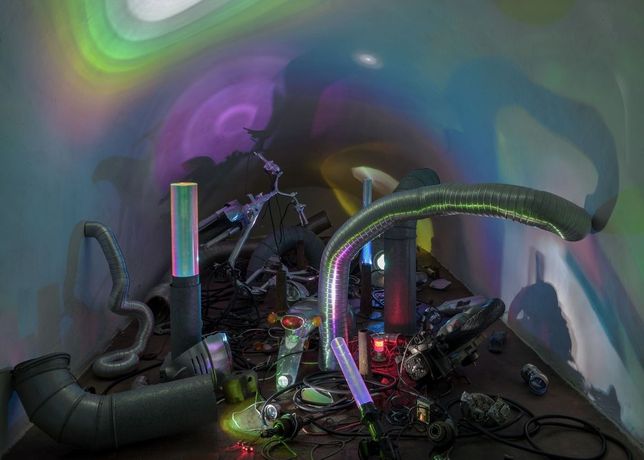 意大利艺术家瓦莱里奥·丹杰洛(Valerio D'Angelo)在博洛尼亚的PIETRO画廊呈现个展《永久信号丢失》。展览通过装置艺术,构建了一个关于失联、悬置与未来想象的叙事空间。丹杰洛以其对工业材料、现成品和科技元素的独特运用而闻名,擅长将日常物件转化为充满诗意的未来主义景观,探讨人类在技术时代中的疏离感与对连接的渴望。本次展览的核心作品包括一个循环搜索的无线电天线、一艘破碎的宇宙飞船以及一个处于停滞状态的宇航员,共同营造出一种信号中断、时间凝固的沉浸式氛围。