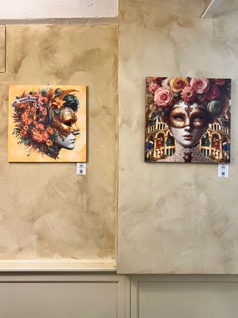 Spinelli以威尼斯嘉年华为灵感,创作出色彩斑斓、细节丰富的面具主题画作。作品中融合了传统与现代元素,象征威尼斯作为多元文化交汇点的独特魅力。