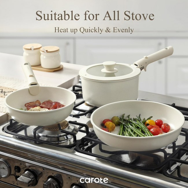 租房党/小户型速来抄作业!🔥这组 #CAROTE奶油白锅具套装 简直是收纳困难症&颜值党的天菜!