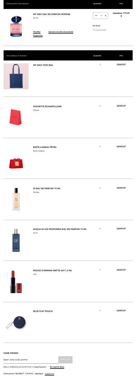 🎁 购物满150欧除了送上方2只15ml香水外,加送一只mini口红+一只阿玛尼logo化妆包
