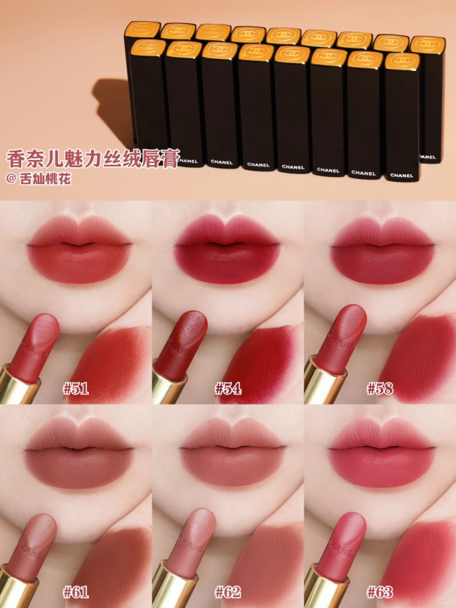 🌟58 鼎鼎大名的香奈儿58号,这支大家一定不陌生了! 无红棕不秋冬!绝美复古红棕高级又气质! 又轻又软的丝绒触感 像花瓣一样! 不挑人也不挑皮的一支绝美显白色!
