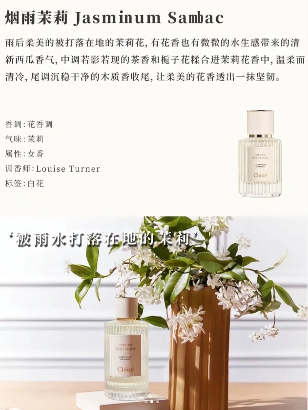 👉🏻 烟雨茉莉50ml >>雨中盛开的茉莉花的味道,茉莉花味很纯正,属于是清新凛冽不媚俗的香味!