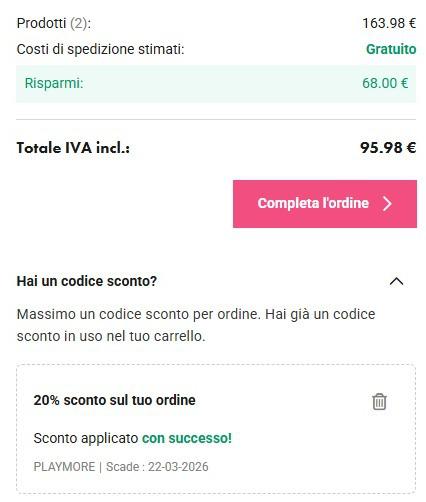 💋 订单满50€立享9折优惠,满70€立享85折优惠,满90€立享8折优惠(折扣码:PLAYMORE)