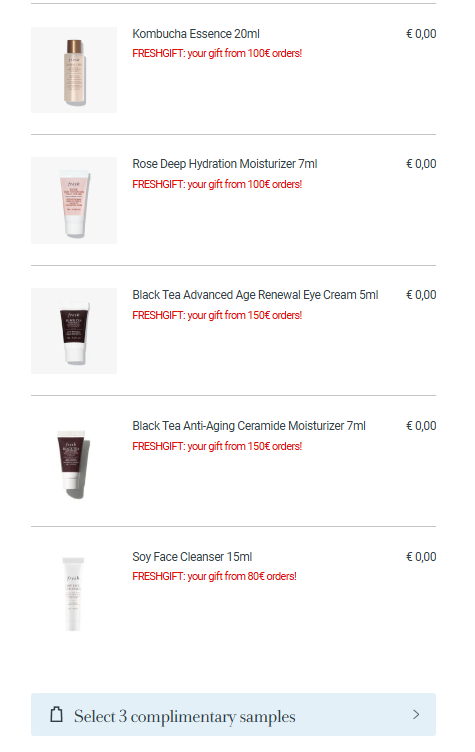 👉 满150€送15ml大豆洁面➕7ml玫瑰保湿面霜➕20ml红茶水➕7ml红茶面霜➕5ml红茶眼霜!价值62€!