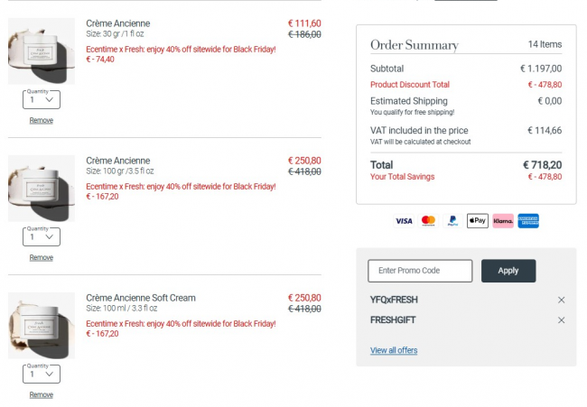 🎁 折后满100€独家加赠50ml大豆洁面+7ml红茶普拉提精华!价值35€!送礼码:YFQxFRESH