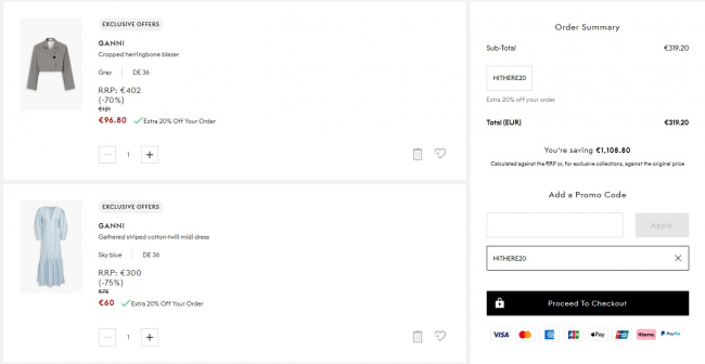 Ganni大促15折起+叠8折!