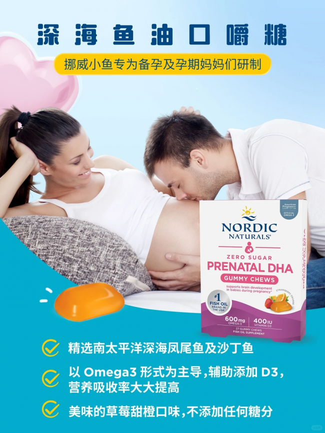 👉 Nordic Naturals 无糖孕妇DHA咀嚼软糖 >>补足孕期流失营养!降低产后抑郁风险! 改善母亲脑及视力功能!