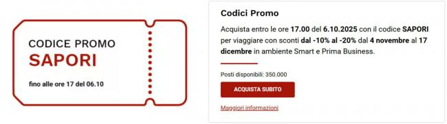在2025年10月6日17:00前,使用折扣码 SAPORI,即可享受11月4日至12月17日期间9折至8折的订票优惠(Smart 和 Prima Business票适用)