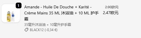 👉 杏仁沐浴油+手霜小套装 >> 捡漏自带6折!叠88折!2.4€带走