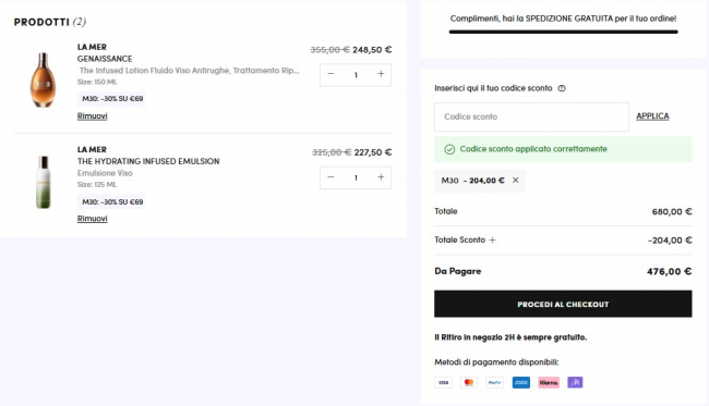M家闪促 La Mer>> 满69€立享7折:M30