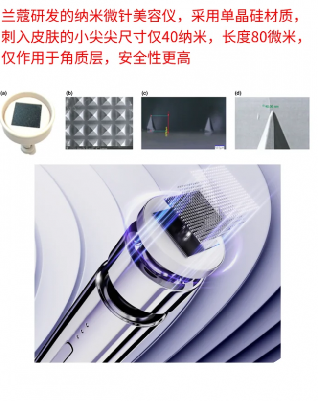 400个超精密纳米尖端可在皮肤上形成隐形微通道,用于促进化妆品渗透并增强产品效果,无需皮肤恢复期