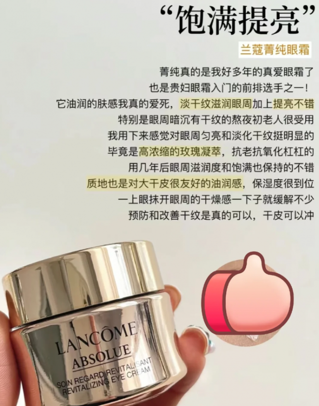 滋润度在线但是一点都不油腻~用完的最大感受之一就是眼下干纹真的迅速就淡掉了!