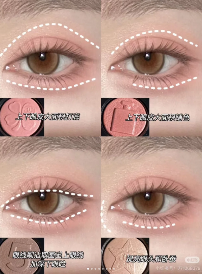 试用还是觉得用手指上色最显色 用刷子铺色基本零显色度 两颗粉色还是有些区别的