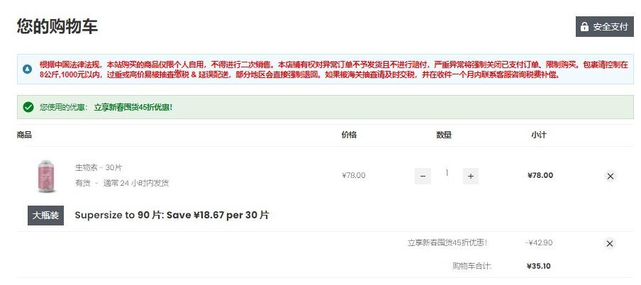 Myvitamins CN中国站,价格以人民币为单位做结算,可以使用微信支付或银联,变相比Local站划算太多!