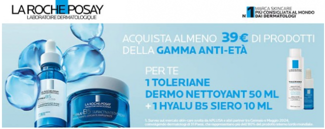 理肤泉>>全场65折起+买抗衰系列产品满39€,即可获赠50ml舒缓洁面乳+1ml玻尿酸B5精华。