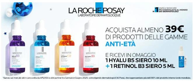 理肤泉>>全场6折起+买抗衰系列产品满39€,即可获赠B5精华液10ml+视黄醇B3精华液5ml