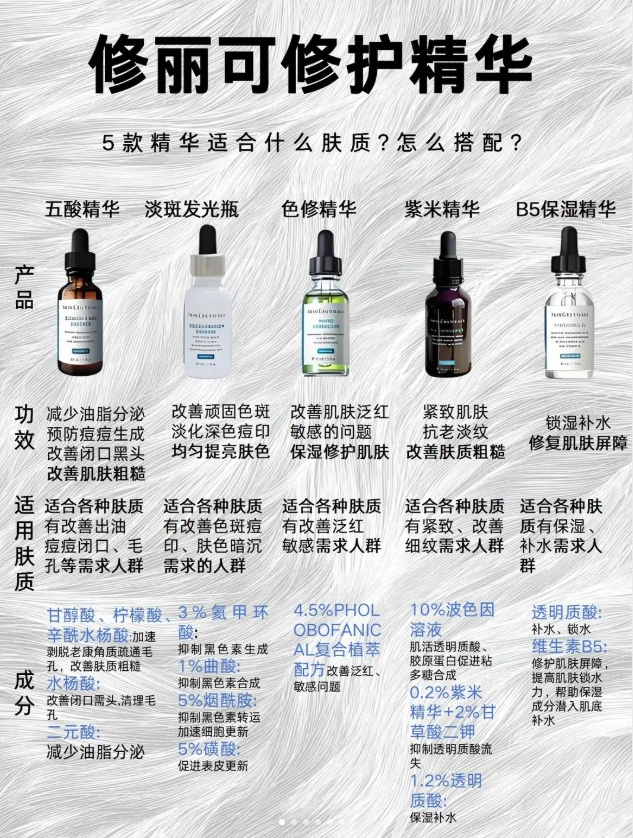 修丽可精华合集,从修红到抗老,从控油到保湿,全方位覆盖肌肤需求