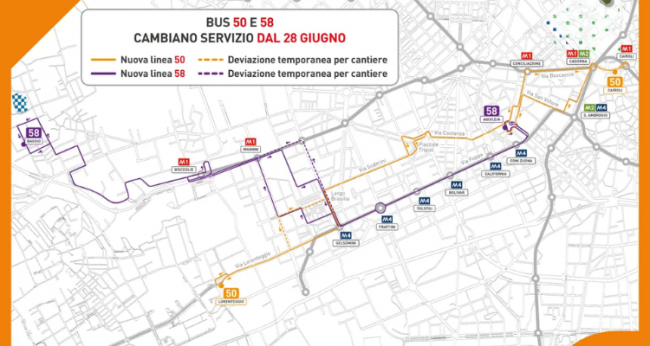 米兰公交6月28日起大改线🚌50路、58路换线路➕临时停靠点全汇总