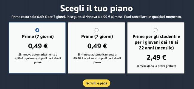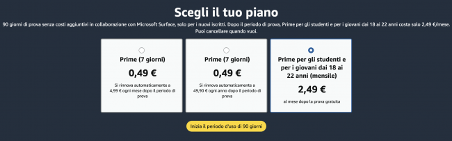 学生群体有更长的试用期!意大利亚马逊的学生会员可以免费试用90天,后续还能享受半价优惠哦!