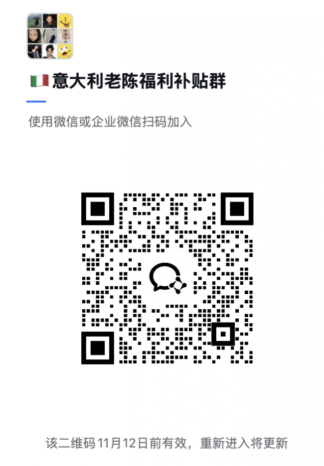 快来加入我们的【意大利福利补贴群】!扫码入群,一起薅羊毛、聊折扣、许愿爆款🎁👇