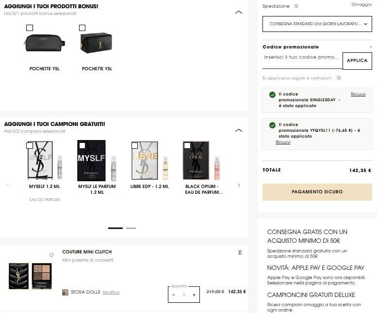2.输入独家折扣码:YFQYSL11,折后满70€赠3件码:SINGLESDAY