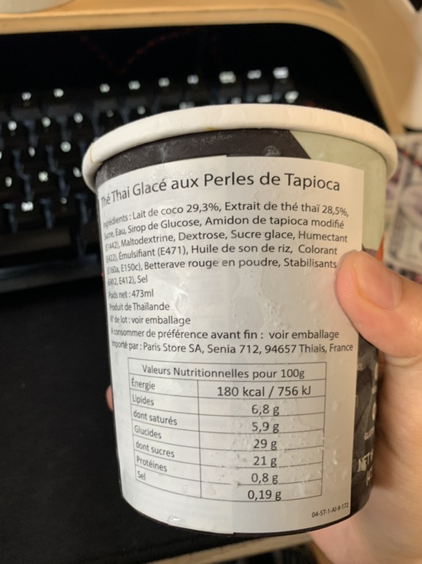 它的外观长这样,大概500g,分量挺大,5.5欧/个,现在做活动买一送一,除了泰式珍珠奶茶,还有另外两种口味,估计是芝麻和抹茶,没有仔细看。巴黎士多的宣传做的比较差,网络上自来水也少。我也是随缘在小红书上看到促销的推送的。