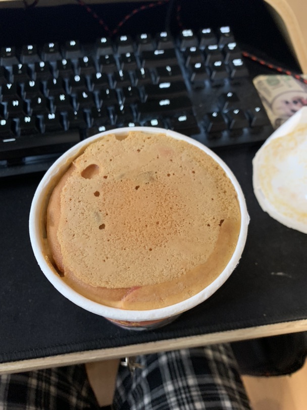 可以从这个截面图看到珍珠了,珍珠不大,是一般奶茶店在售珍珠的1/3,可能是冻着的,珍珠稍稍有点硬,但没有完全成为bug,在忍受范围内。冰激凌塞入嘴的那一瞬间,我真的以为自己在喝奶茶,椰奶完美融合在里面里了,没有一丝丝的不和谐,仿佛真的是牛奶,再混合着茶香,不错不错。
