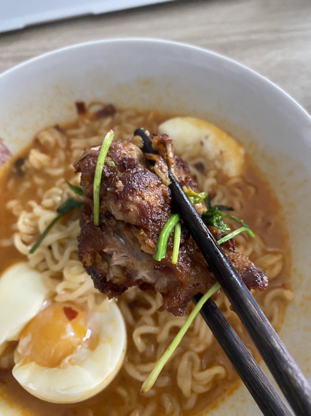 最后用鸡架配上一碗泡面🍜miamiamian。好吃😋