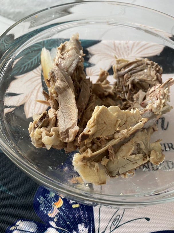 一般熬完的鸡汤我会把鸡架捞出来,然后打个料,蘸着吃,剩下的鸡汤也可以留着做鸡汤饭,加一点胡萝卜,煮出来的米饭也很香很好吃。